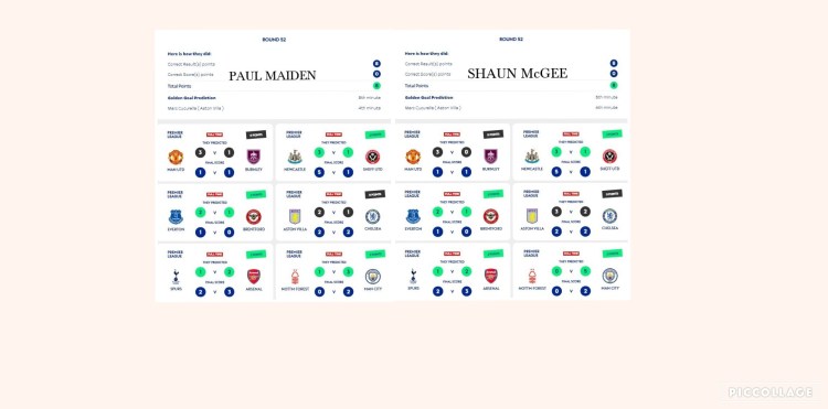 It was contested between Paul Maiden and Shaun McGee. The final finished 8-8 – both players forecast Everton to beat Brentford 2-1, Newcastle to beat Sheffield United 3-1 and Arsenal to beat Spurs 2-1 – they also forecast that Manchester City would beat Nottingham Forest. This meant they earned 8 points each.